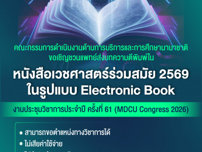 ขอเชิญชวนแพทย์ส่งบทความตีพิมพ์ใน “หนังสือเวชศาสตร์ร่วมสมัย 2569” ✨MDCU CONGRESS 2026✨ Posted on17 เม.ย. 2026Tags#mdcu, 61stMDCUCONGRESS2026, chula, chulalongkorn, MDCUCONGRESS2026, MDCUTALK, medicine, คณะแพทยศาสตร์จุฬาลงกรณ์มหาวิทยาลัย, คณะแพทยศาสตร์จุฬาฯ, คณะแพทย์จุฬาฯ, แพทย์จุฬาฯ 📢 ขอเชิญชวนแพทย์ส... Read More