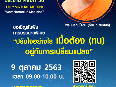 MDCU Congress 2020 การประชุมวิชาการประจำปี ครั้งที่ 56 ขอเชิญรับฟังการบรรยายพิเศษ เรื่อง “ปรับใจอย่างไร เมื่อต้อง (ทน) อยู่กับการเปลี่ยนแปลง” Posted on08 ต.ค. 2020Tags#mdcu, chula, chulalongkorn, medicine, คณะแพทยศาสตร์จุฬาลงกรณ์มหาวิทยาลัย, คณะแพทยศาสตร์จุฬาฯ, คณะแพทย์จุฬาฯ, แพทย์จุฬาฯ