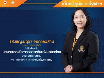 รศ.พญ.นฤชา จิรกาลวสาน รองคณบดี ฝ่ายวิรัชกิจ ได้รับตำแหน่งนายกสมาคมโรคจากการหลับแห่งประเทศไทย วาระ 2567-2569 (เกียรติภูมิแพทย์จุฬาฯ) Posted on11 ก.ค. 2024Tags#mdcu, chula, chulalongkorn, medicine, คณะแพทยศาสตร์จุฬาลงกรณ์มหาวิทยาลัย, คณะแพทยศาสตร์จุฬาฯ, คณะแพทย์จุฬาฯ, เกียรติภูมิแพทย์จุฬาฯ, แพทย์จุฬาฯ