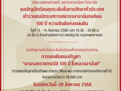 ขอเชิญชวนนักเรียนระดับชั้นมัธยมศึกษาตอนปลายร่วมการแข่งขันตอบปัญหา✨️ตามรอยราชกรณีย์ 100 ปี ในหลวงอานันท์✨️