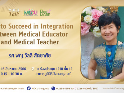 MDCU TALK 🎤✨ How to Succeed in Integration Between Medical Educator and Medical Teacher โดย รศ.พญ.วัลลี สัตยาศัย Posted on14 ส.ค. 2023Tags#mdcu, chula, chulalongkorn, MDCUCONGRESS2023, MDCUTALK, medicine, คณะแพทยศาสตร์จุฬาลงกรณ์มหาวิทยาลัย, คณะแพทยศาสตร์จุฬาฯ, คณะแพทย์จุฬาฯ, แพทย์จุฬาฯ