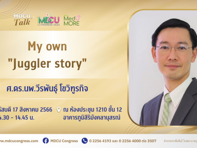 MDCU TALK 🎤✨ My own “Juggler story” ศ.ดร.นพ.วีรพันธุ์ โขวิฑูรกิจ Posted on15 ส.ค. 2023Tags#mdcu, chula, chulalongkorn, MDCUCONGRESS2023, MDCUTALK, medicine, คณะแพทยศาสตร์จุฬาลงกรณ์มหาวิทยาลัย, คณะแพทยศาสตร์จุฬาฯ, คณะแพทย์จุฬาฯ, แพทย์จุฬาฯ