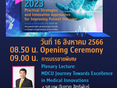 MDCU CONGRESS 2023 “Practical Strategies and Innovative Approaches for Improving Patient Outcome” 16 สิงหาคม 2566 Posted on15 ส.ค. 2023Tags#mdcu, chula, chulalongkorn, MDCUCONGRESS2023, medicine, คณะแพทยศาสตร์จุฬาลงกรณ์มหาวิทยาลัย, คณะแพทยศาสตร์จุฬาฯ, คณะแพทย์จุฬาฯ, แพทย์จุฬาฯ